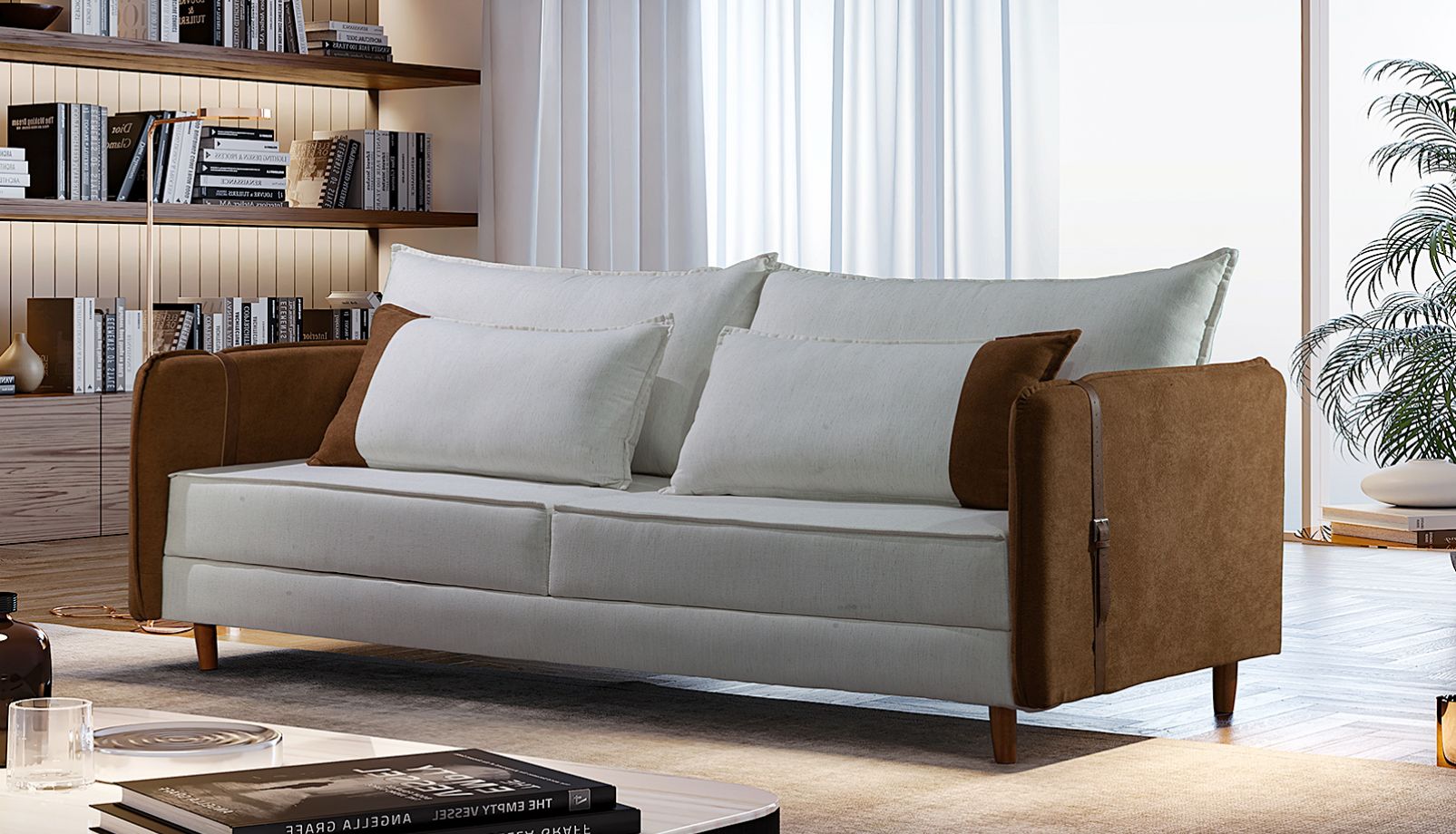 Pés em madeira na cor castanho.
